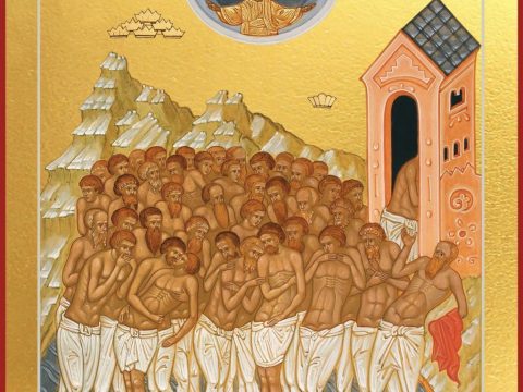 Службу возглавил архимандрит Иларион, ему сослужили иеромонах Арсений (Чечота) и братия в сане. В храме молились послушники, трудники и паломники обители. Сорок воинов-христиан из Каппадокии…