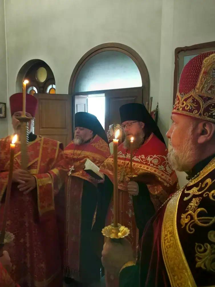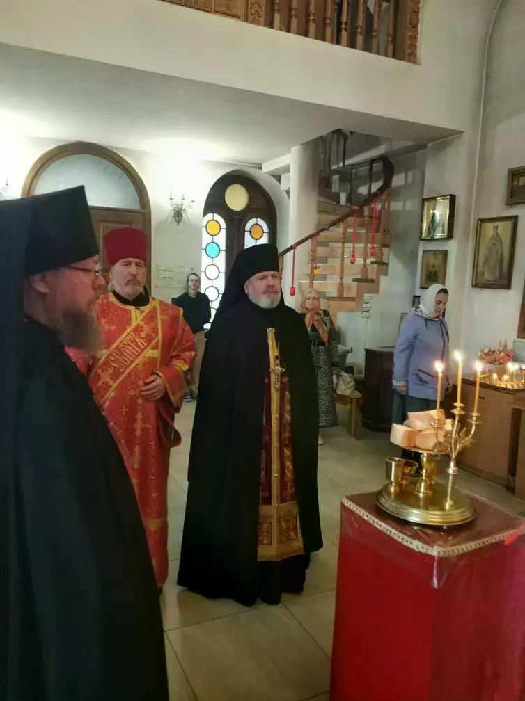 18 апреля Всенощное бдение в храме иконы Божией Матери «Всецарица» подворья мужского Косьмо-Дамиановского монастыря возглавил архимандрит Иларион (Каменский). Ему сослужили благочинный монастыря иеромонах Онисифор (Козицкий), иеромонах Антоний (Копылов), протоиерей Иоанн Кропивницкий и диакон Максим Сорочан.