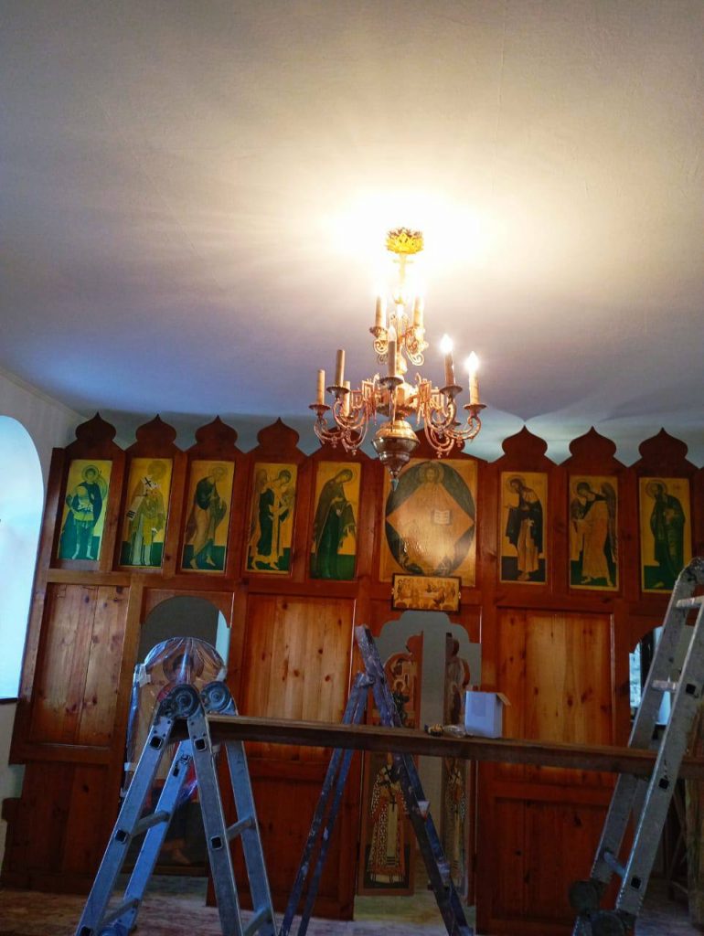 Параллельно завершается реставрация храма в честь иконы Божией Матери «Иерусалимская»в горах над Алуштой. В ходе работ модернизировали инженерные системы, заменили печь, обновили электропроводку и установили современное освещение. Особое внимание уделили реставрации иконостаса и побелке, что сделало его долговечным и красивым.