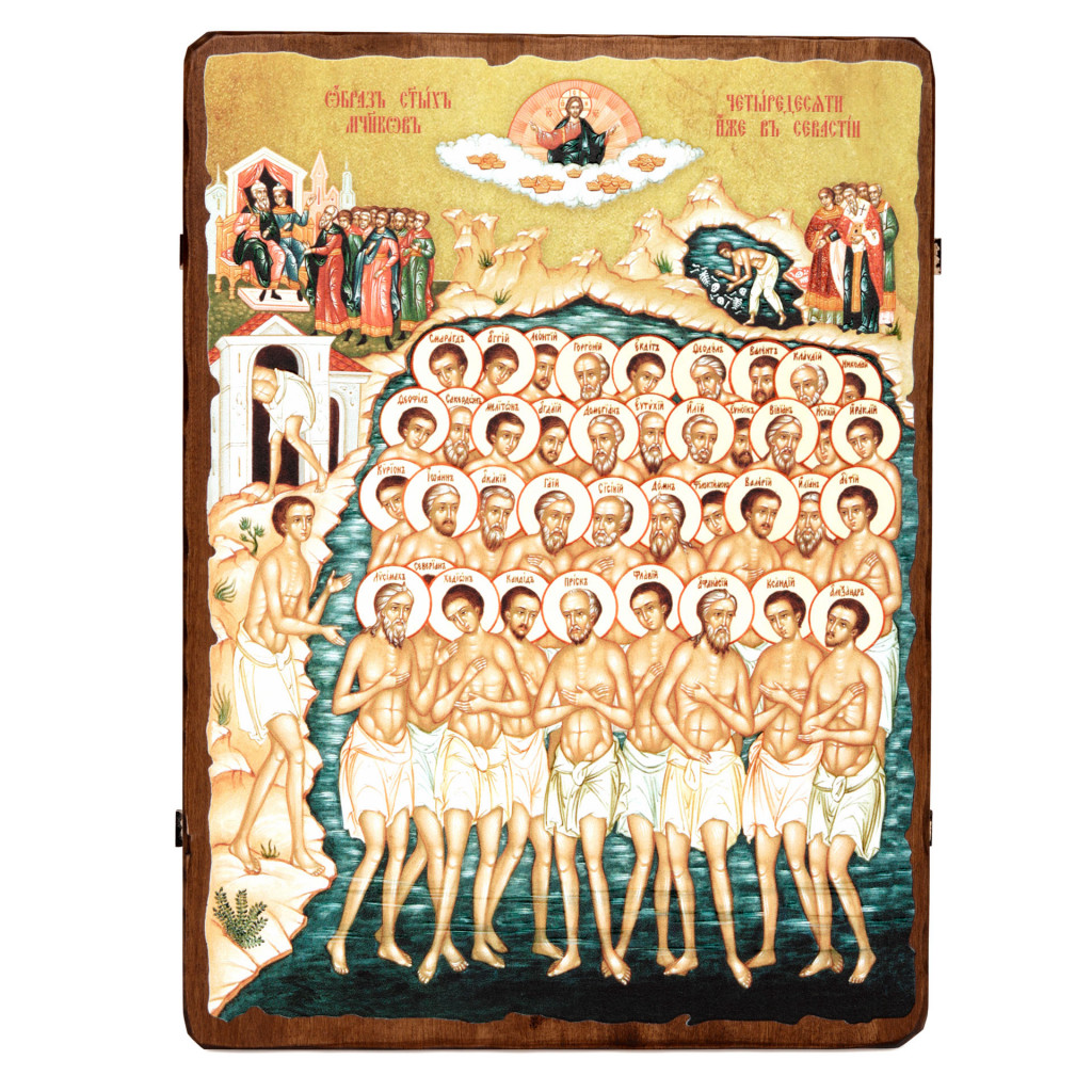 Сорок воинов-христиан из Каппадокии служили в римском XII Молниеносном легионе, базировавшемся в древнем городе Севастии (ныне территория Турции). Это было элитное подразделение, которое насчитывало 5000 войнов и имело 500-летнюю славную историю, но командир Агрикола приказал его лучшим воинам поклониться языческим богам. Те отказались и были приговорены к казни через стояние в ледяном озере.