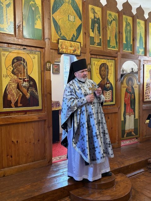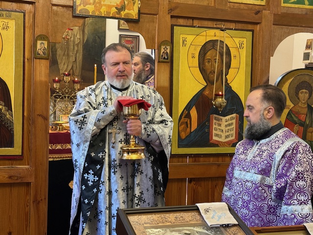 Службу возглавил архимандрит Иларион, ему сослужили иеромонах Арсений (Чечота) и братия в сане. В храме молились послушники, трудники и паломники обители.