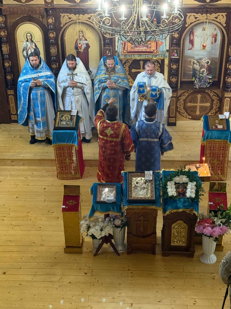 В мужском монастыре святых мучеников Косьмы и Дамиана прошло торжественное богослужение в честь Покрова Божией Матери. Игумен архимандрит Иларион совершил Божественную Литургию, ему сослужили братия Нило-Столобенского монастыря.